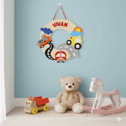 Li’ll Pumpkins Car Theme handmade Personalized Name Hanging, Color – Multi