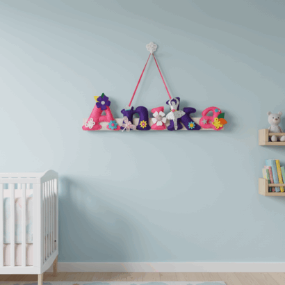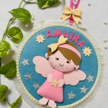 Li’ll Pumpkins CROWN Theme Personalised Felt Name Hanging, Color – Blue