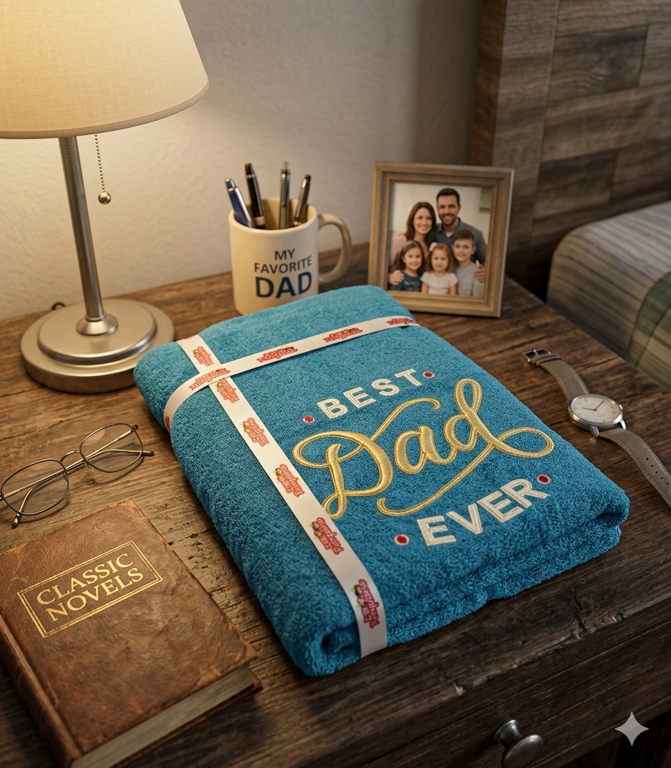 “Because a legendary dad deserves a legendary towel. Wrap him in the comfort and appreciation he deserves!”
