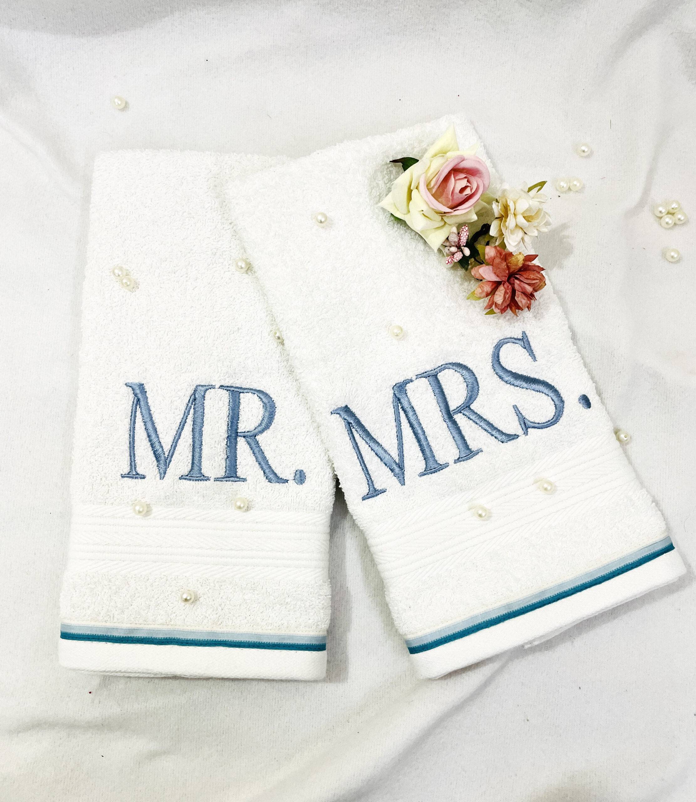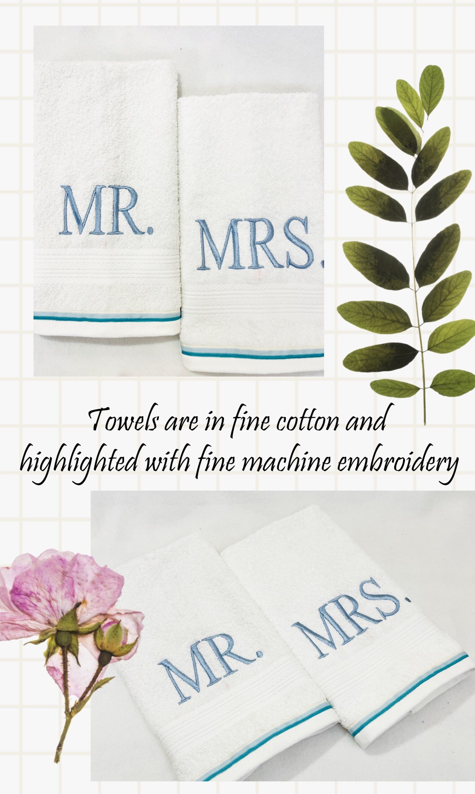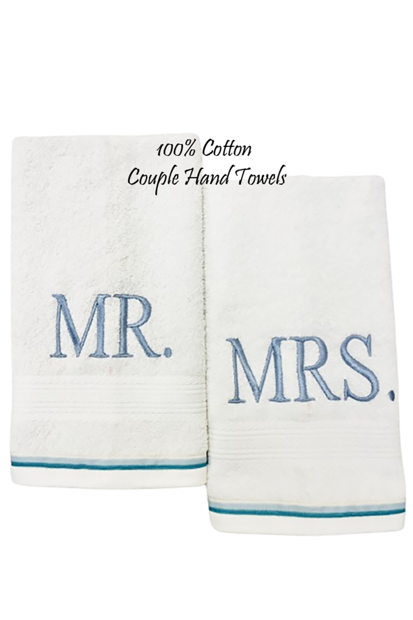 • Set Includes: One “MR.” hand towel, one “MRS.” hand towel.