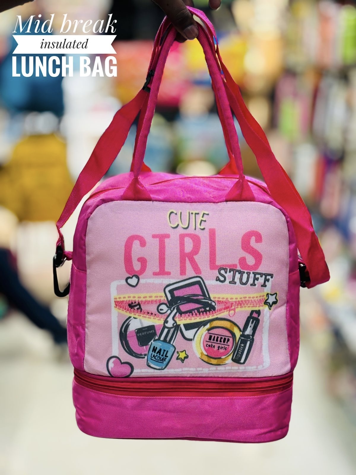 • Spacious & Practical: With a large main compartment and a separate base zip, there is plenty of room for a full bento box, water bottle, and extra treats.