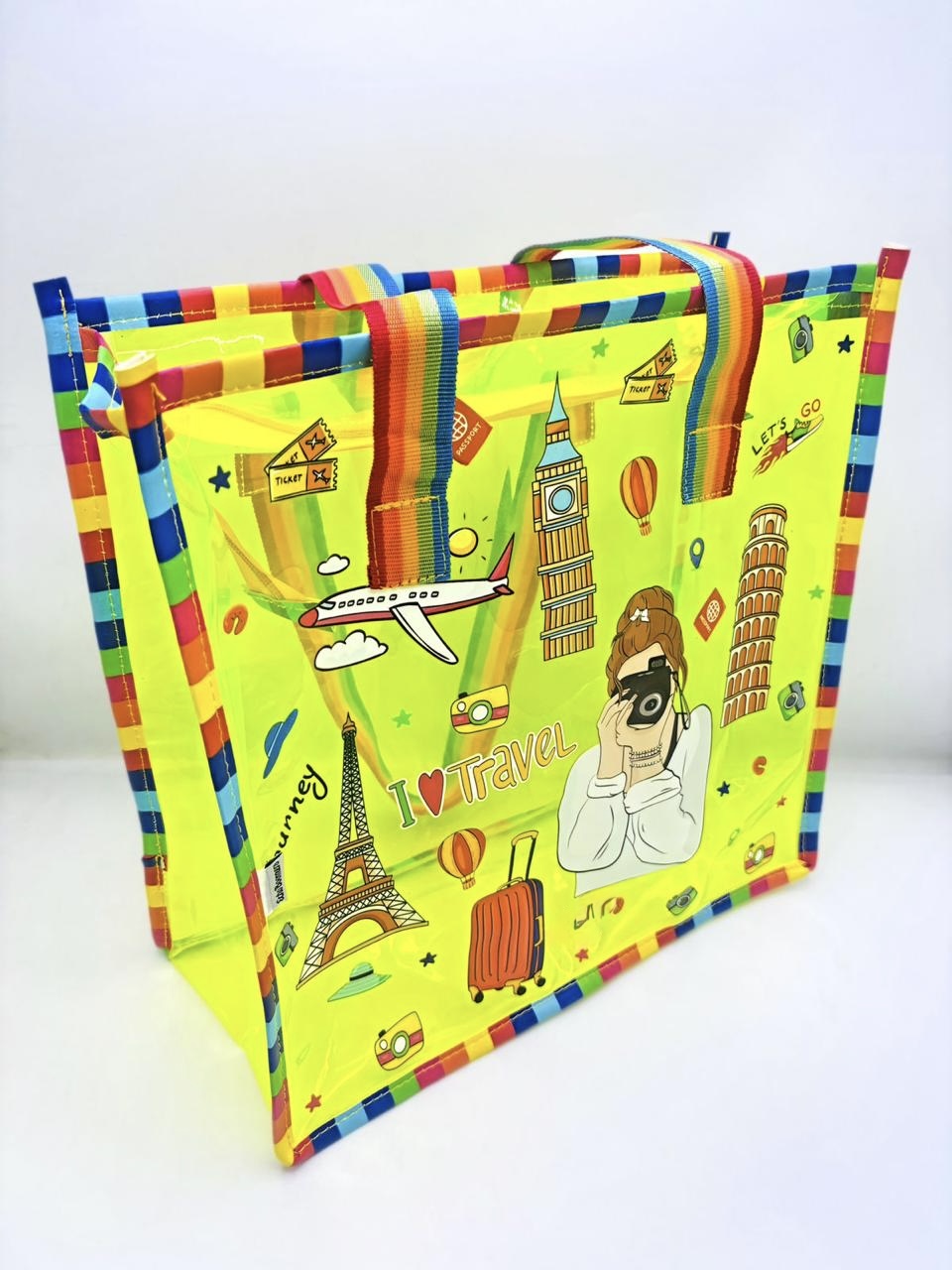 Why carry a boring bag when you can carry a conversation piece? This Electric Yellow Landmark Tote blends high-visibility neon with classic travel nostalgia. It’s loud, it’s proud, and it’s perfectly sized for your busy lifestyle.
