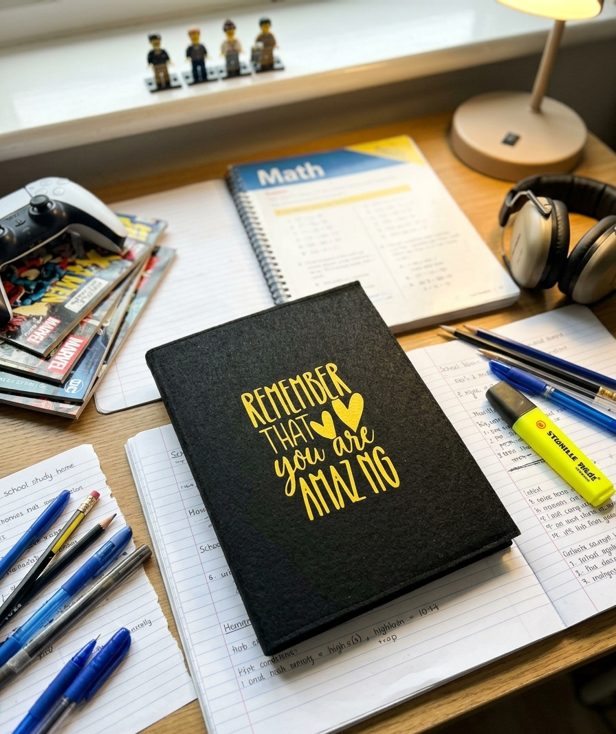 Empowering Design: The “Remember That You Are Amazing” quote is printed in a high-contrast yellow font, accented with playful hearts for an extra touch of warmth.